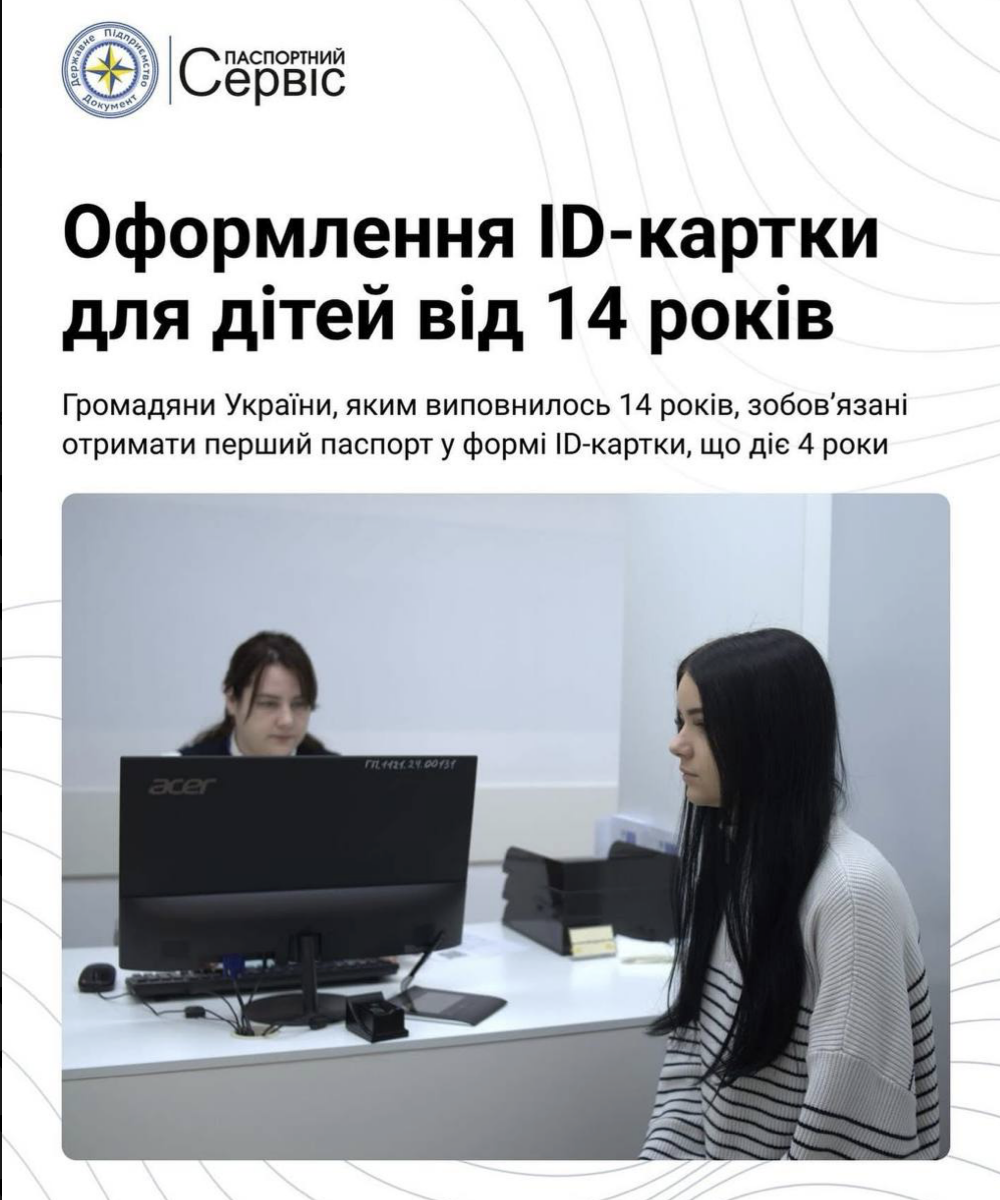 Відповідно до законодавства України, кожен громадянин, який досяг 14 років, зобов’язаний отримати паспорт громадянина України у формі ID-картки. Термін дії для осіб від 14 до 18 років — 4 роки.
